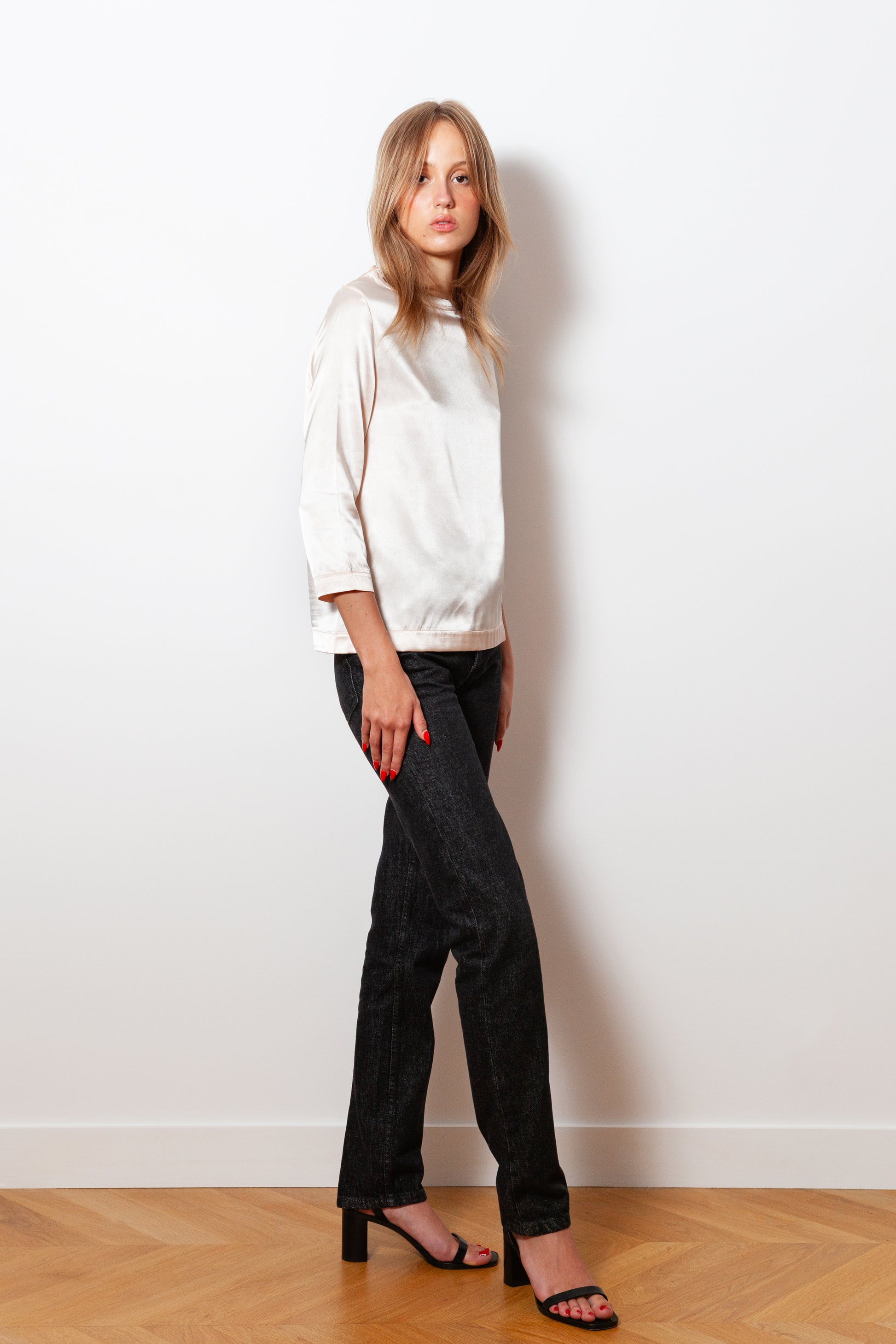 Incontournable de la collection, le Top Nap façon soie est la pièce parfaite du midi-minuit. Son col rond découpé au laser, ses manches 7/8 et sa coupe droite en font l'allié idéal des jours où l'inspiration manque. Porté avec un jean, il devient votre compagnon du quotidien, tandis qu'avec les bons accessoires, il se transforme en votre meilleur atout pour une soirée chic. Versatile et raffiné, le Top Nap est la pièce essentielle qui s'adapte à toutes les situations avec style .